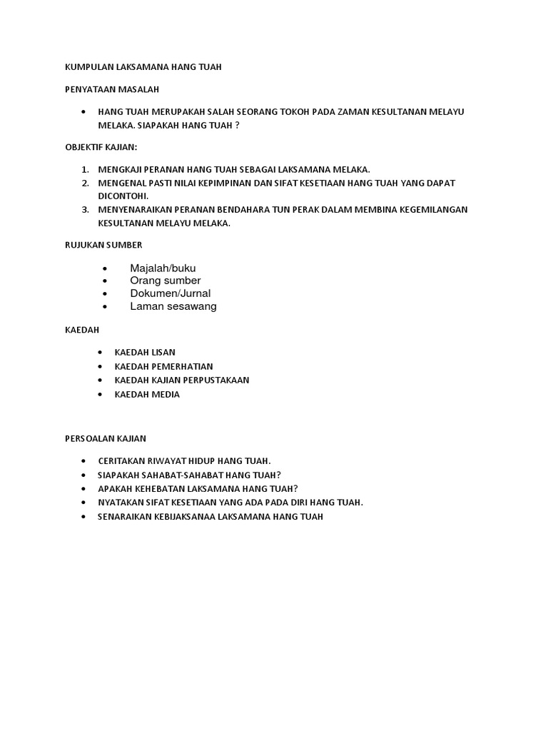 Contoh kaedah kajian sejarah kesultanan melayu melaka. AssalamualaikumNama saya Rahayu Mazuin dari 2 Al Farabi ini hasil kajian kes sejarah saya saksikanlahkesultanan melayu melakaJADUAL KERJA132Perancangan -jadual kerja -objektif kajian -kaedah kjian -tajuk Proses awalMenyediakan kerangka kasar penulisan465Pelaporan -Pengenalan -Menjelaskan ciri-ciri lokasi yg strategik yang dipilih oleh Parameswara. Save KERJA KHUSUS SEJARAH For Later. Kerja Kursus Sejarah Tingkatan 2 Kesultanan Melayu Melaka.