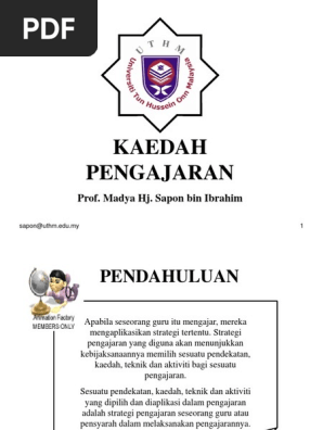 Download full-text PDF Read full-text. Kajian-kajian awal mengenai kesediaan pelajar di IPT Malaysia untuk mengikuti m-pembelajaranmelaporkan keputusan daripada pelbagai sudut kajian. Kaedah pengajaran bermaksud tindakan-tindakan yang dilakukan oleh guru dalam mengendalikan proses pengajaran dan pembelajaran.