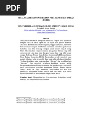 Artikel Ilmiah Kesalahan Penggunaan Bahasa Dalam Iklan Baris Daerah Jember Pdf Io Pdf