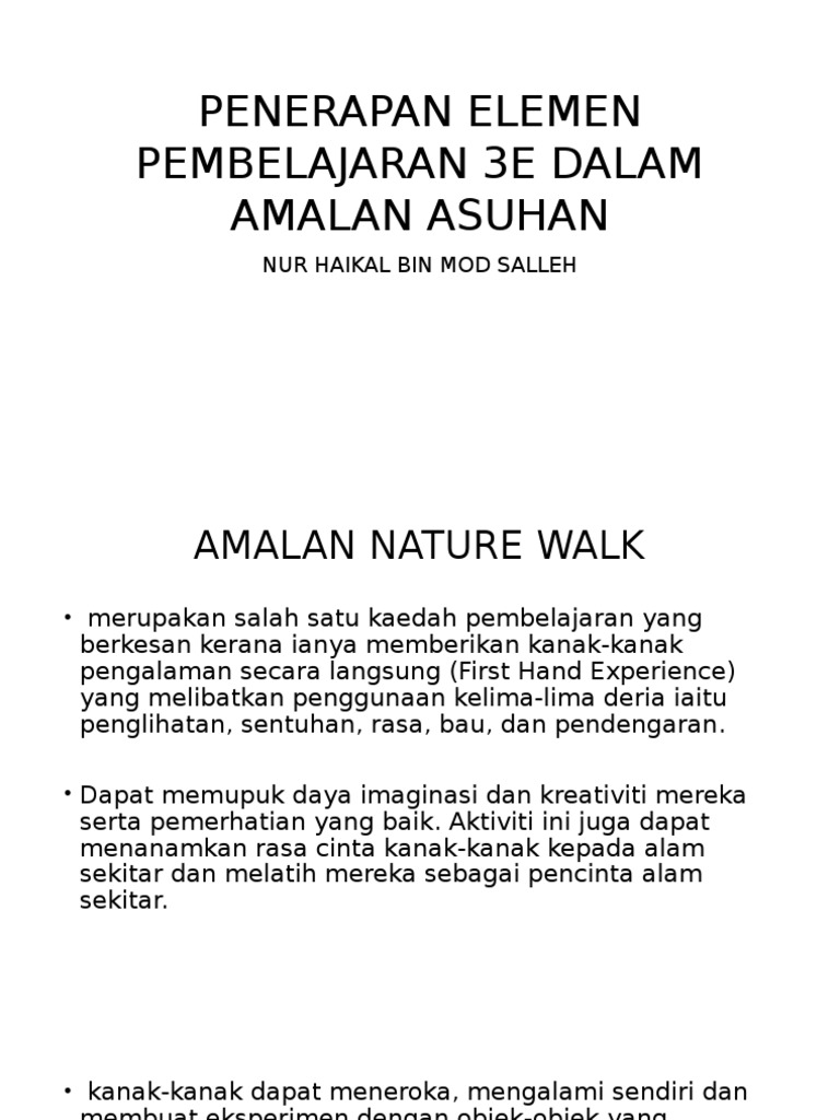 Penerapan Elemen Pembelajaran 3e Dalam Amalan Asuhan Pdf