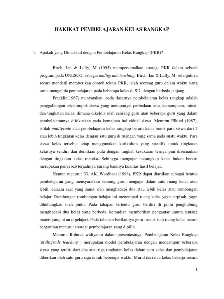Hakikat Pembelajaran Kelas Rangkap Tugas 1 Pdf